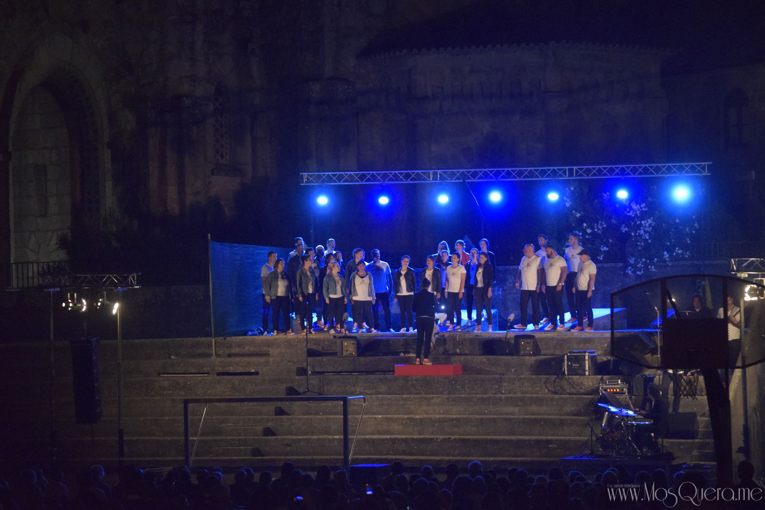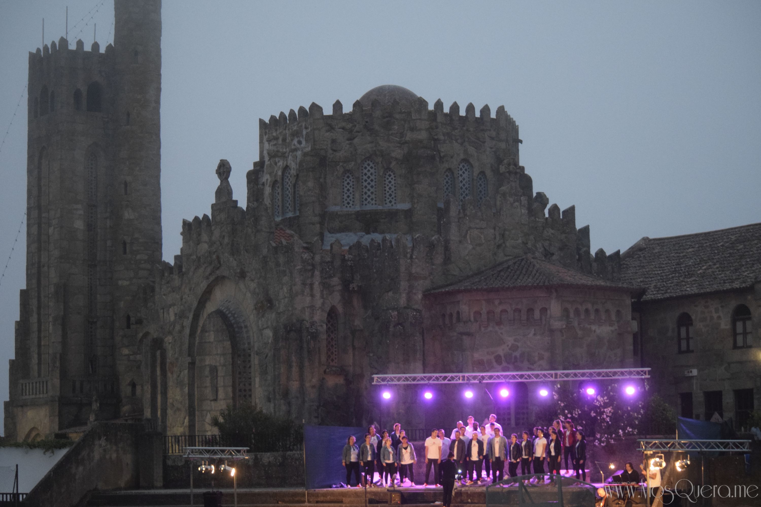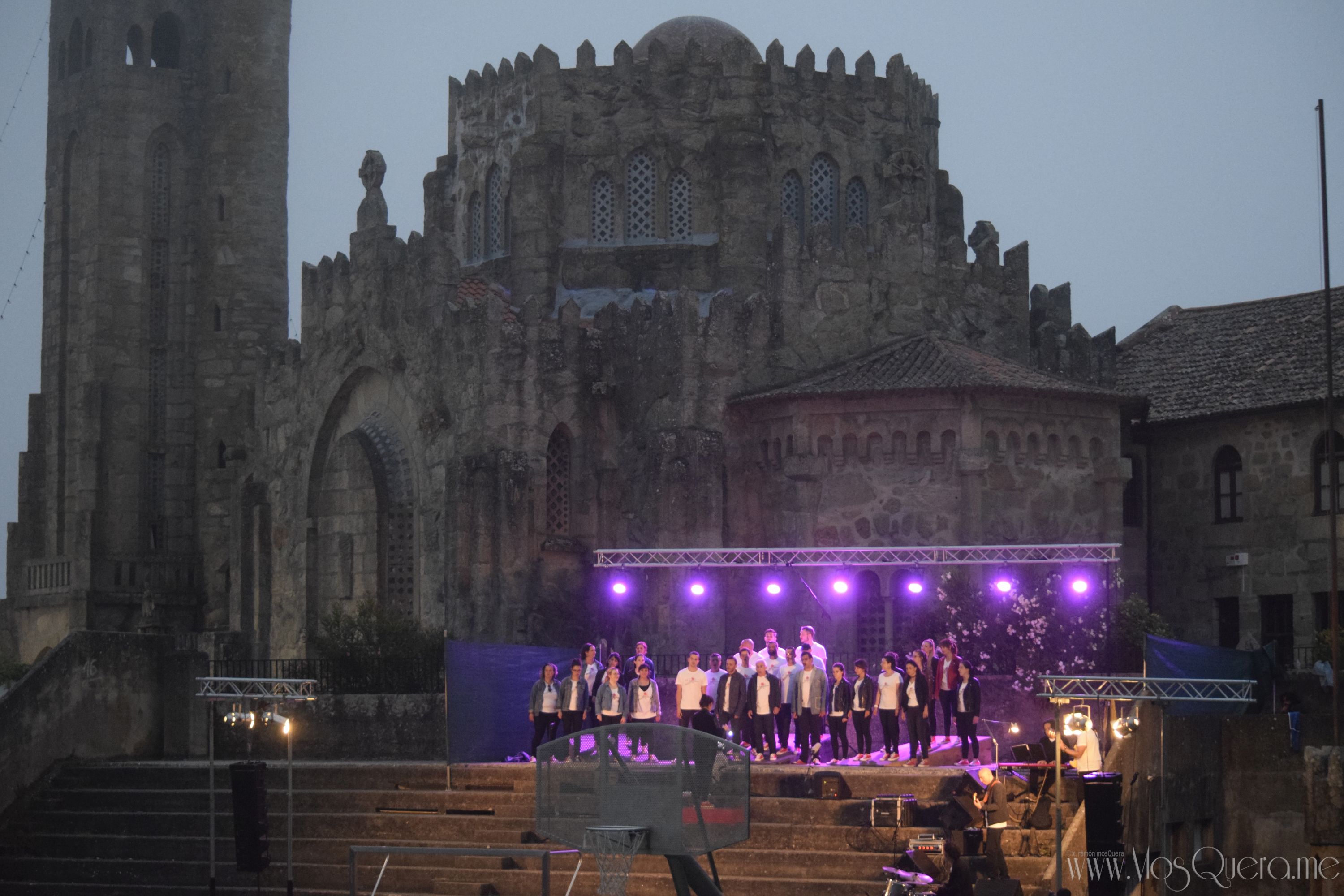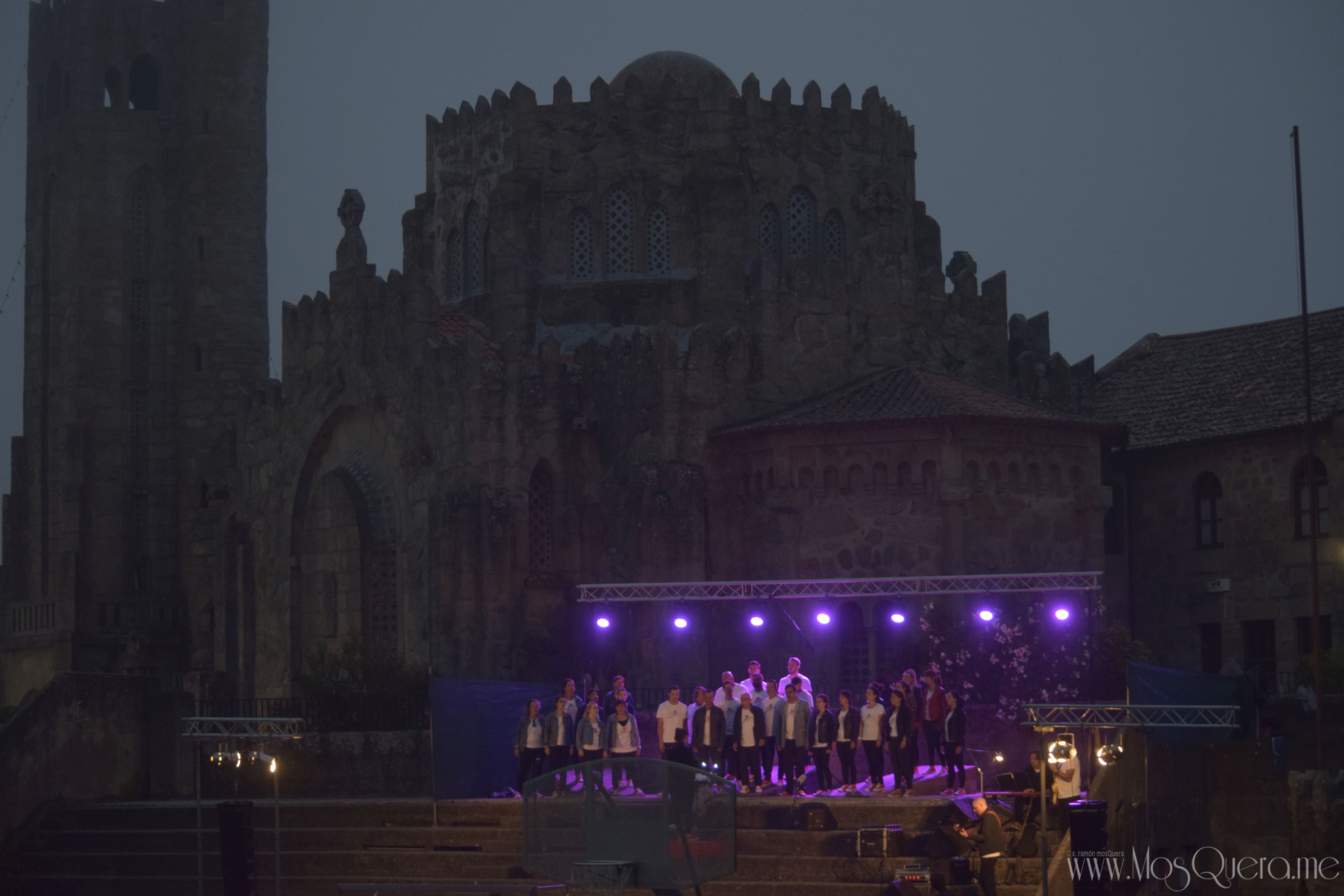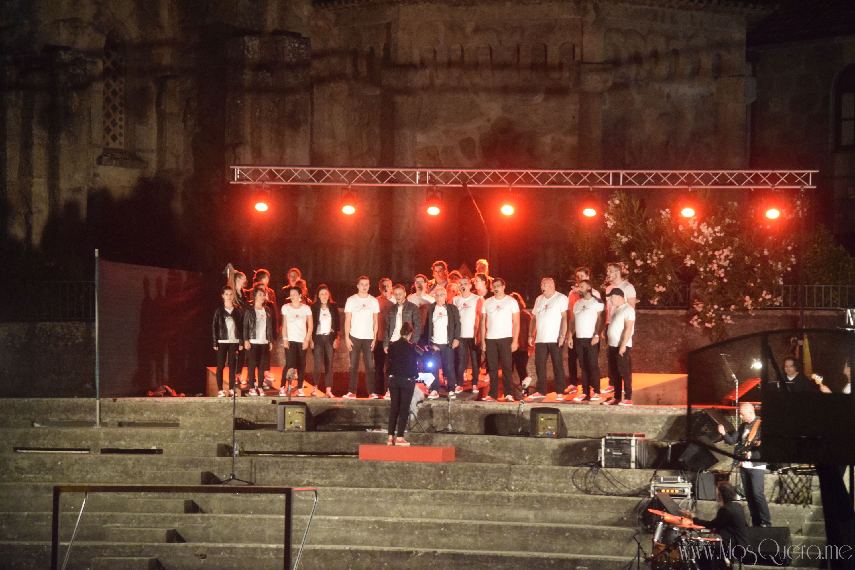 Concerto do Coro Gli Appassionati en Panxón en xullo de 2018 co Templo de Panxón de fondo.